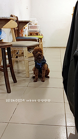 -去取要送人的禮盒,遇到一隻洗完頭借放給老闆顧的狗狗,一直在偷看我(好好笑)