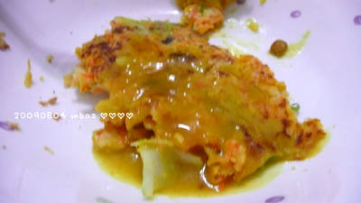 -大雨阻擋了嘴麻半邊的媽媽遛小孩逛超市的計畫,不過一鍋咖哩沾蔬菜煎餅,真是個好主意….大寶好捧場,不過這次…..呵呵,萵苣和紅蘿蔔放太多啦